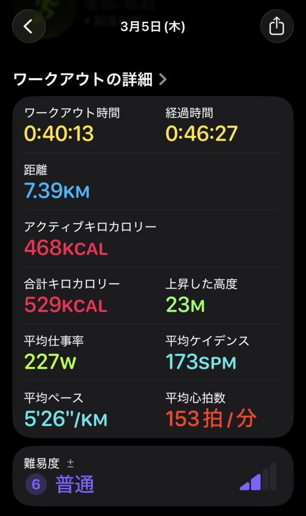 程よく走ると、アップルウォッチからアナウンスが。