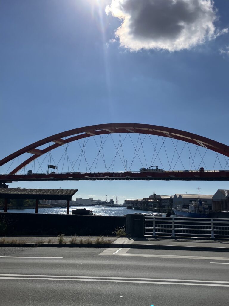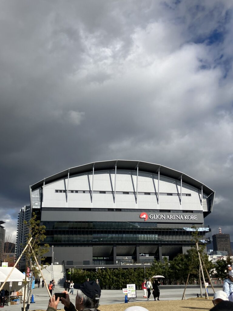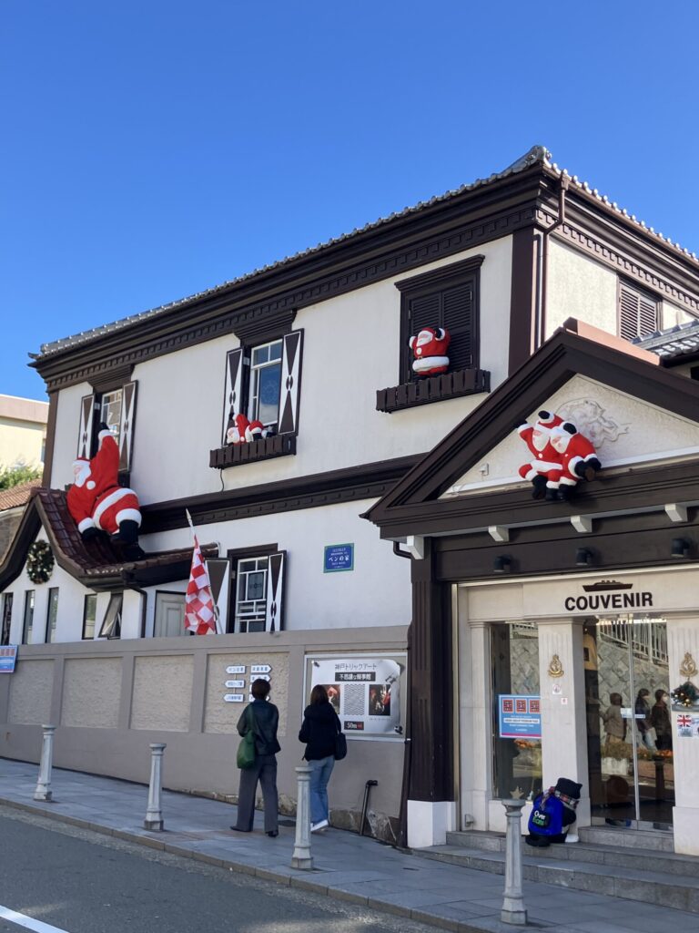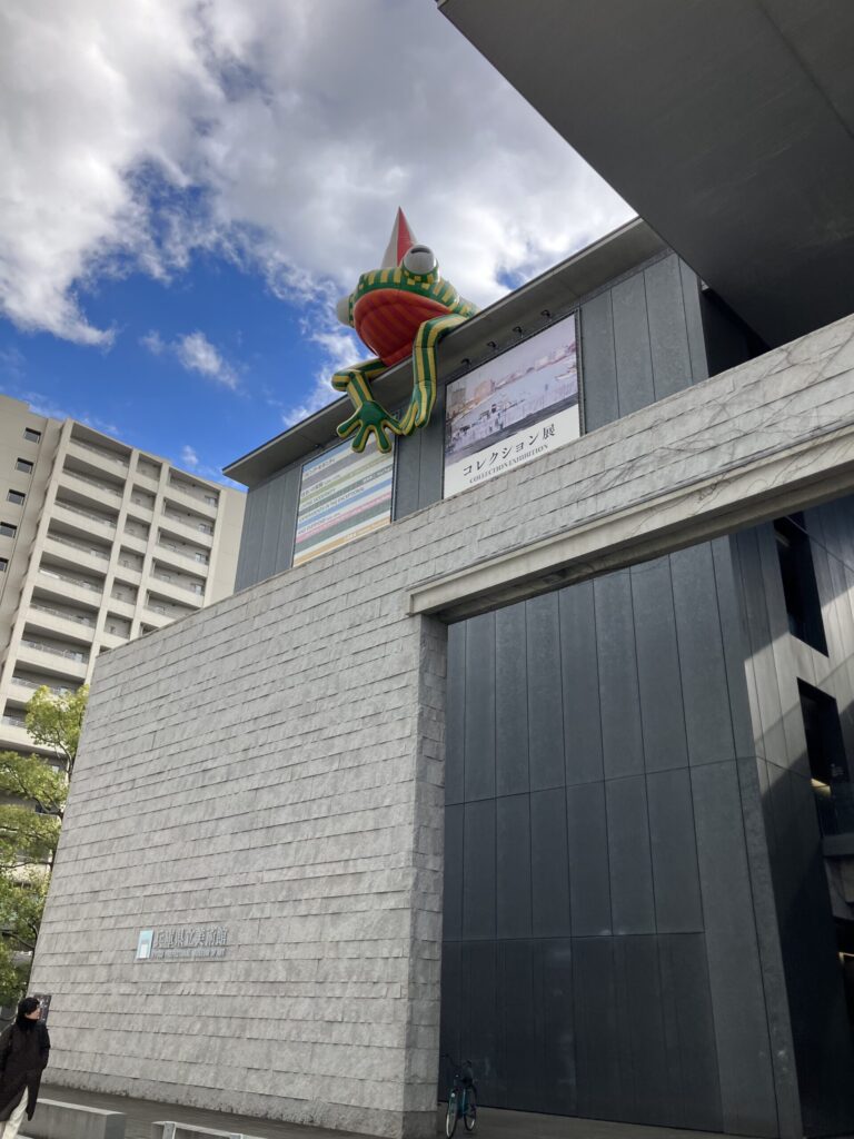 テンポよく話をしながら東に進み、美術館を見上げると、おっきなカエルが🐸