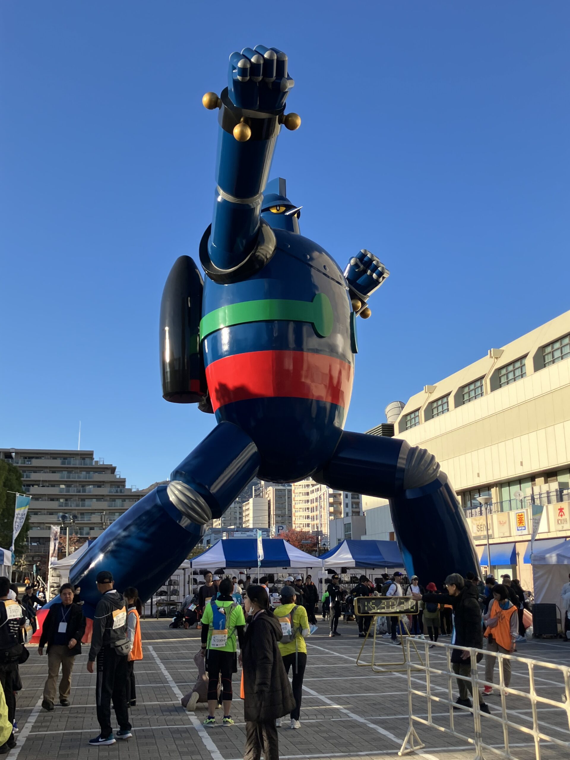 テンポよく話をしながら東に進み、美術館を見上げると、おっきなカエルが🐸